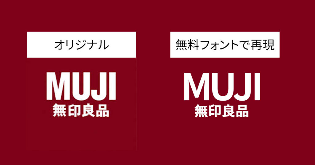 無印良品のロゴには「Helvetica」と「モリサワ ゴシックMB101」という有料フォントが使われていますが、無料の「Noto Sans JP」や「源ノ角ゴシック」でも十分に無印らしい雰囲気は出せます。